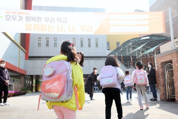 두근거리는 서울강솔초등학교 초등학생들의 등굣길. 4월 20일 장애인의 날을 맞아 눈과 귀가 즐거운 등굣길 맞이 행사가 열렸습니다.