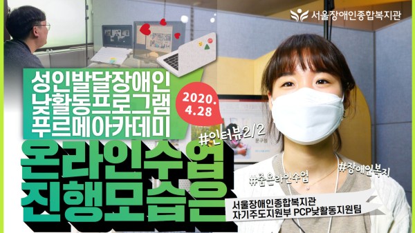 성인발달장애인 낮활동지원프로그램 푸르메아카데미 온라인수업 진행 모습은? -담당자와 참가자 부모님 인터뷰 영상