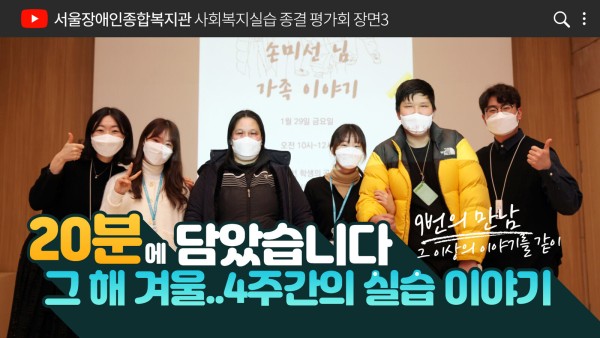 이 영상은 평가회 당시 실습생들의 프레젠테이션과 선배 사회복지사가 전하는 응원의 글을 담은 영상입니다.