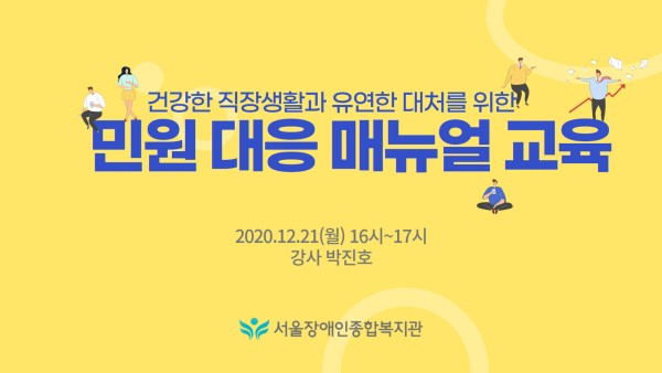 12월 21일(월), 오후 4시부터 5시까지 복지관은 '건강한 직장생활과 유연한 대처를 위한 민원 대응 매뉴얼 교육'을 진행했습니다.