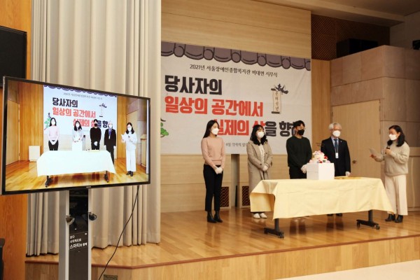 또한 인공지능 아나운서 기술이 적용된 '2021년 서울장애인종합복지관 사업 총괄 영상'도 사업 이해 차원에서 시청했습니다.
