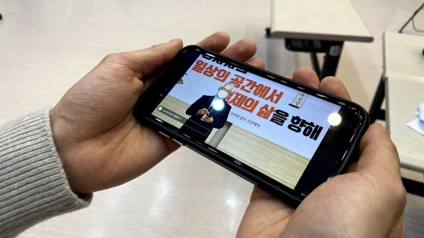 (사진_스마트폰으로 신년사를 시청하는 모습)