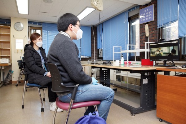 공정함과 객관성 확보를 위해 이번 선발 면접에는 직업지원부 직원 1명과 강동구청 담당 직원 1명이 팀을 이루어 2:1 면접을 진행했습니다. 1명 참가자의 면접이 끝난 후에는 해당 자리 소독과 더불어 면접관들의 소통도 화상으로만 진행했습니다.