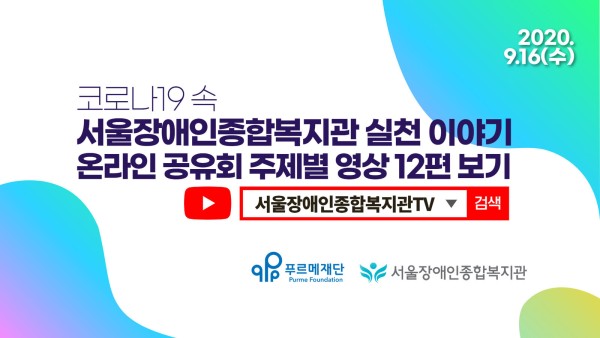 (이미지 설명_코로나19 속 서울장애인종합복지관 실천 이야기 온라인 공유회 주제별 영상 12편 보기 / 유튜브 검색창에 서울장애인종합복지관TV)