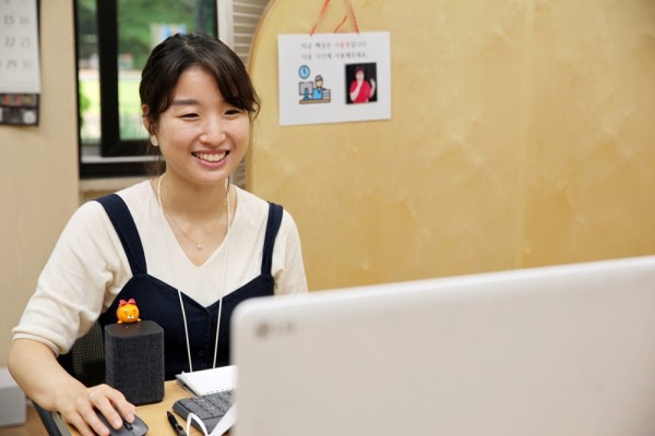 온라인 수업에서 가장 중요한 게 생각한 건 복지관이 아닌 가정에서도 가져야 할 훈련생들의 자발성과 지속적인 동기부여였어요. 훈련생들이 서로 소통하는 실시간 대화 기능을 활용하거나 가정 내 훈련 과정을 화면으로 공유하면서 그 부분을 강화해갔어요."