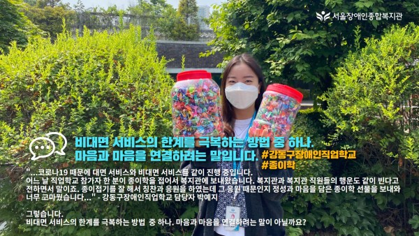 비대면 서비스의 한계를 극복하는 방법 중 하나. 마음과 마음을 연결하려는 말입니다. [서울장애인종합복지관 강동구장애인직업학교 …