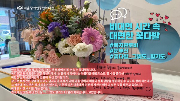 비대면 시간 속 대면한 꽃다발 #복지관로비 #눈부신 #꽃다발_그빛도_향기도
