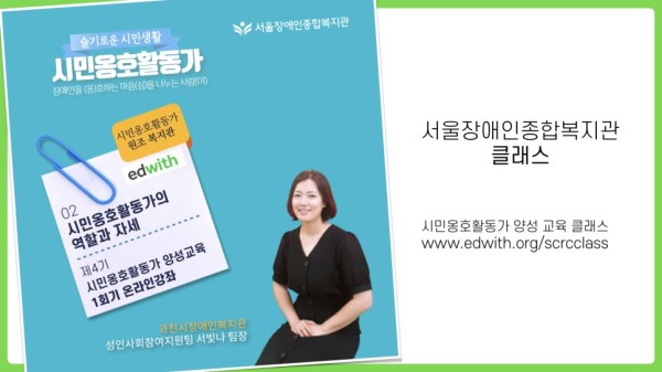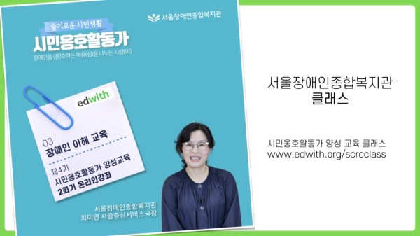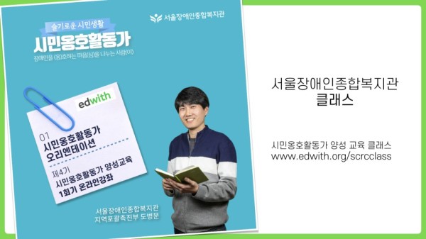 서울장애인종합복지관은 시민옹호활동가-‘옹심이’(이하 옹심이) 양성 교육을 온라인강좌 교육 플랫폼인 ’에드위드’(www.edwith.org)로 진행합니다.