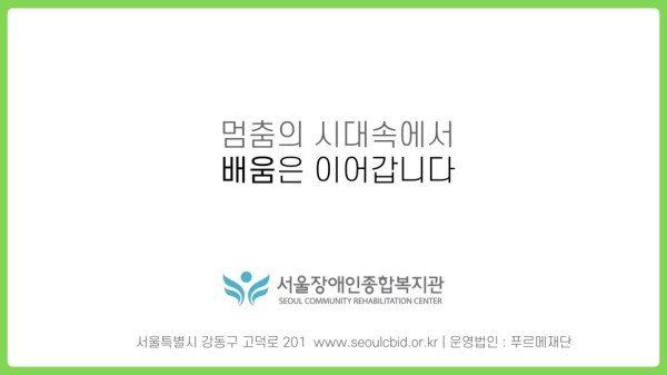서울장애인종합복지관은 코로나19로 인해 복지관 프로그램이 원활히 진행되기 어려운 상황이 오히려 비대면 서비스와 교육 콘텐츠 확장, 온라인 교육 플랫폼 기반 마련 등과 새로운 도전과 배움의 기회라고 여기고 있습니다.