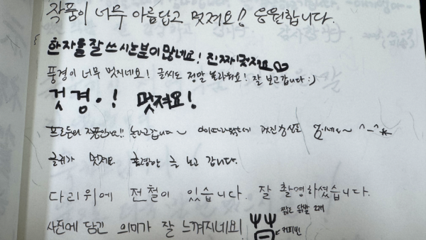 "풍경이 너무 멋지네요! 글씨도 정말 놀라워요! 잘 보고 갑니다."