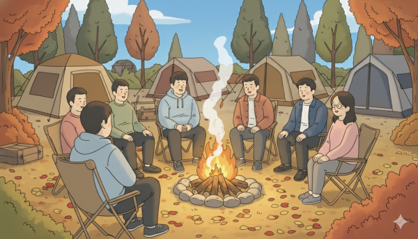 선선한 가을바람이 옷깃을 파고들고, 타오르는 모닥불 앞에 둘러앉으니 금세 온기가 퍼져왔습니다.