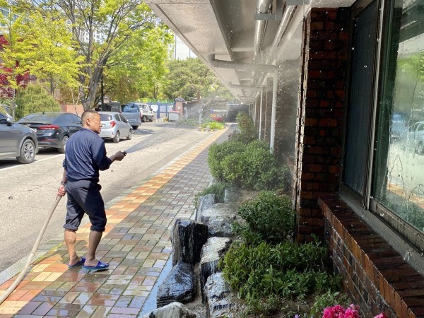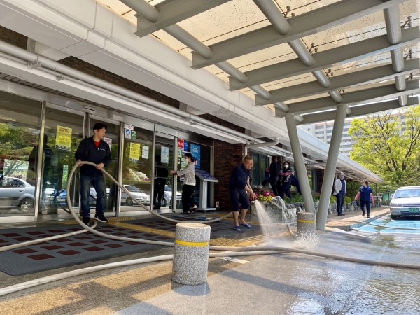 사진_중앙출입구 물청소 모습