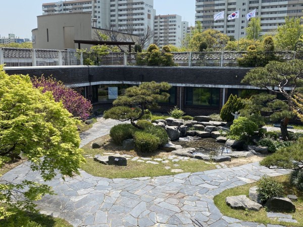 분수를 재가동한 복지관 중앙정원