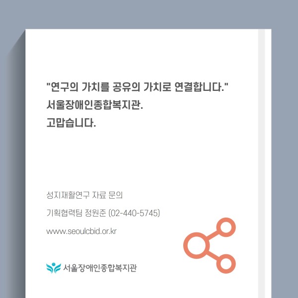"연구의 가치를 공유의 가치로 연결합니다." 서울장애인종합복지관. 고맙습니다.