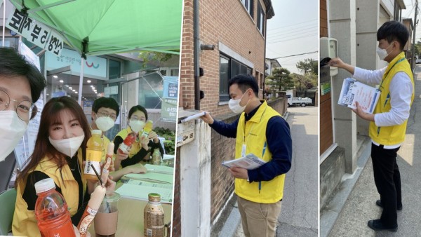 (사진 왼쪽)동주민센터에서 지원 활동 중인 동료를 격려하기 위해 찾은 복지관 복지관의 또다른 동료들