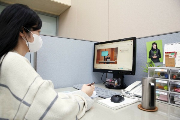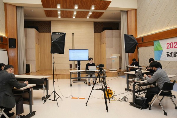 코로나19 관련 유튜브 스트리밍 기능으로 온라인 교육을 진행한 서울장애인종합복지관 모습
