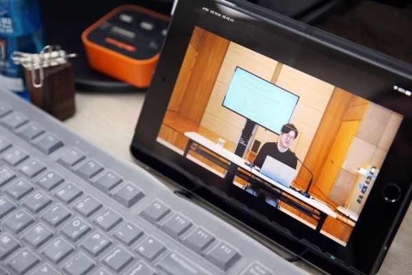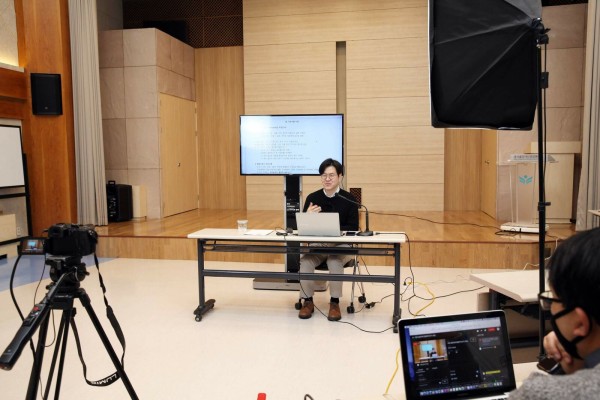 사진_교육 중인 강사와 이를 촬영하는 카메라