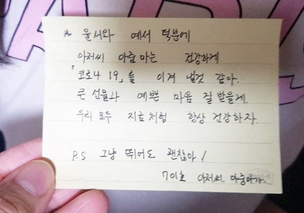 손소독제를 이웃에게 전하자 이렇게 '마음'이 돌아왔습니다.