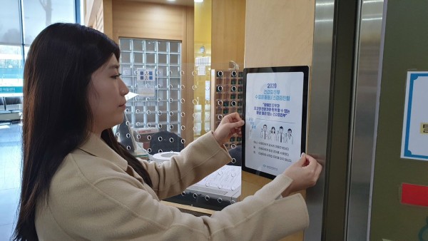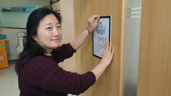 (사진_재활지원팀 윤리행동강령을 부착하는 직원)