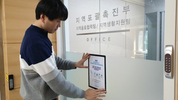 (사진_지역포괄촉진부 윤리행동강령을 부착하는 직원)
