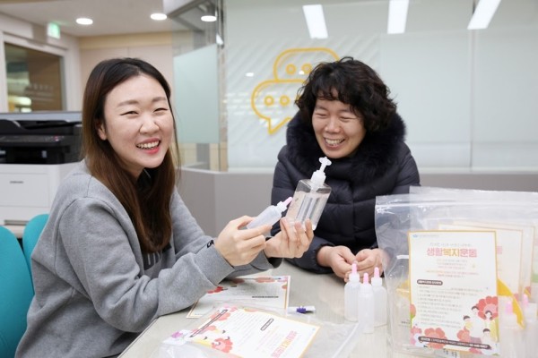 코로나19 이렇게 대응해요-손소독제 나눔 활동을 구실로 안부 묻는 생활복지운동