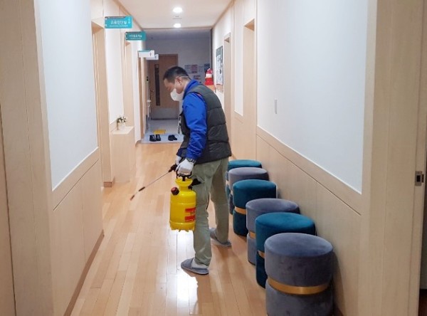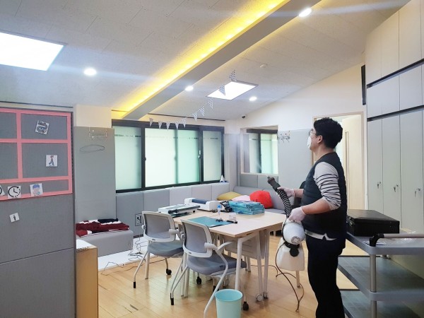 복지관은 코로나19 확산을 예방하고, 안전하게 복지관을 이용할 수 있도록 방역(소독) 작업을 진행하고 있습니다.