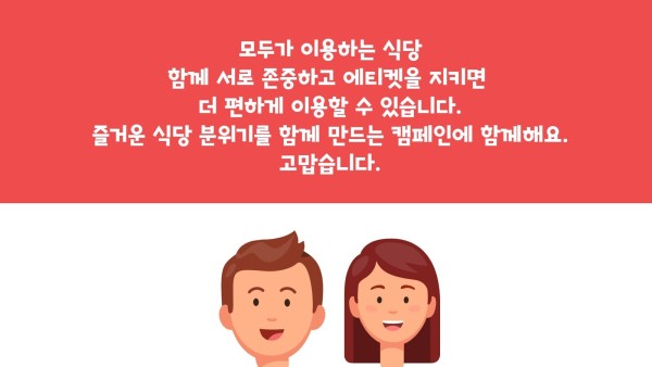 즐거운 식당 분위기를 함께 만드는 캠페인에 함께해요. 고맙습니다.