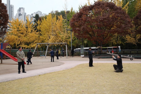 회의실에서의 시종일관 화기애애한 상태로 진행된 오늘의 만남은 공식적인 설명이 끝난 이후에도 계속되었습니다. 서로가 준비한 선물을 교환한데 이어서 가을이 무르익은 복지관 잔디밭에서는 서로 사진을 찍고, 또 한국의 가을 풍경을 저마다의 카메라와 눈에 담으며 복지관에서의 순간순간을 남겼습니다. 단풍나무, 은행나무 앞에서만큼은 업무 차 방문이라기 보다는 가을 여행자 같았습니다.