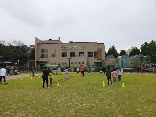 사진 : 힐링타임 중 복지관 스누젤렌마당에서 진행된 체육활동