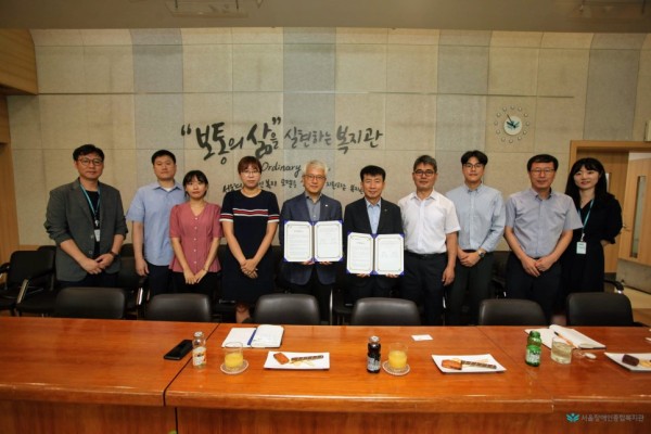 2019년 8월 5일(월), 서울장애인종합복지관 회의실에서 서울장애인종합복지관과 LH한국토지주택공사 동북권주거복지지사 간의 업무협약식이 진행되었습니다. 이날 협약식은 곽재복 관장을 비롯한 지역사회지원센터 직원과 염재현 지사장을 비롯한 지사 관계자가 참석한 가운데 열렸습니다.