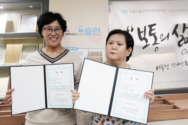 -단체전 우승자 전근영 씨와 오정란 활동지원사