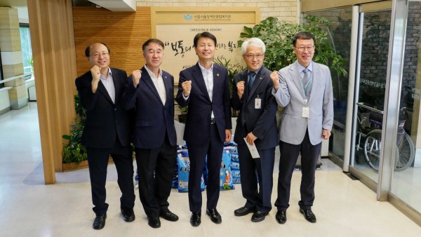 사진_기증한 쌀과 보건복지부 및 복지관, 재단 관계자의 단체 사진