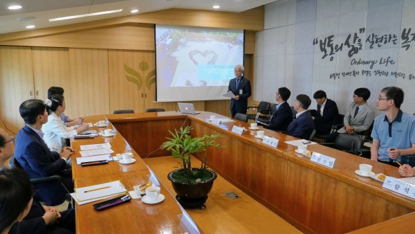 곽재복 관장은 브리핑에서 복지관 전반적인 사업 소개와 보건복지부의 커뮤니티케어 흐름 속에서 복지관이 펼치고 있는 강동지역사회복지실무협의체, 방문형 재활 프로그램, 탈시설 자립생활주택 연계 프로그램과 복지관이 지역사회 주민, 기관과 협력하여 진행하고 있는 시민옹호활동가, 국제 협력과 교류의 일환을 펼친 각종 사업에 대해 설명을 하였습니다.