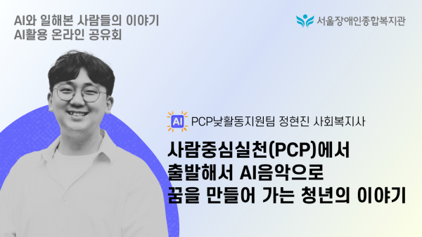 이 발표는 서울장애인종합복지관 정현진 사회복지사가 한 청년 당사자와의 사례를 통해 사람중심실천(PCP)과 AI 활용이 어떻게 결합하여 개인의 삶에 긍정적인 변화를 가져오는지를 보여주는 사례입니다.