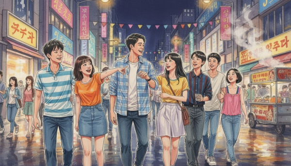 혜화역에 도착하자 불빛 가득한 대학로 거리가 눈에 들어왔고, 모두의 얼굴이 기대감으로 환해졌습니다.