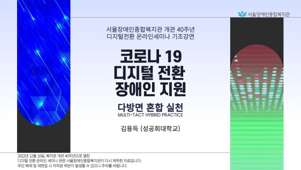 [기조강연]김용득 교수 "코로나19, 디지털 전환, 장애인지원-다방면 혼합 실천" | 서울장애인종합복지관 개…